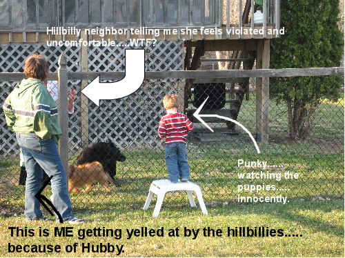 When we moved into this house in May 2004, we nicknamed some of our neighbors. Who doesn’t do that? Anyway, the guy behind us is the “Axe Murderer” as he is a quiet man who you never see……just like when a neighbor is interviewed after a murder and they ALWAYS say…”he was a quiet neighbor….he kept to himself…” That’s OUR backyard neighbor. Our side neighbors (We live on a corner lot, so we only have 1 side neighbor…..THANK GOD!) were promptly named “The Hillbillies.” They have an ok house…….they do nothing to the outside…….but then they have an atrocious tin-roofed, screen ripped, dilapidated deck in the back which houses old mops, brooms, carpets, etc. It’s such an eyesore.