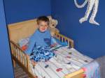I changed his room around a bit to accommodate the new bed…. Here are some pictures of his room and of him in his bed! Where is my baby?!?!?!?!?!??