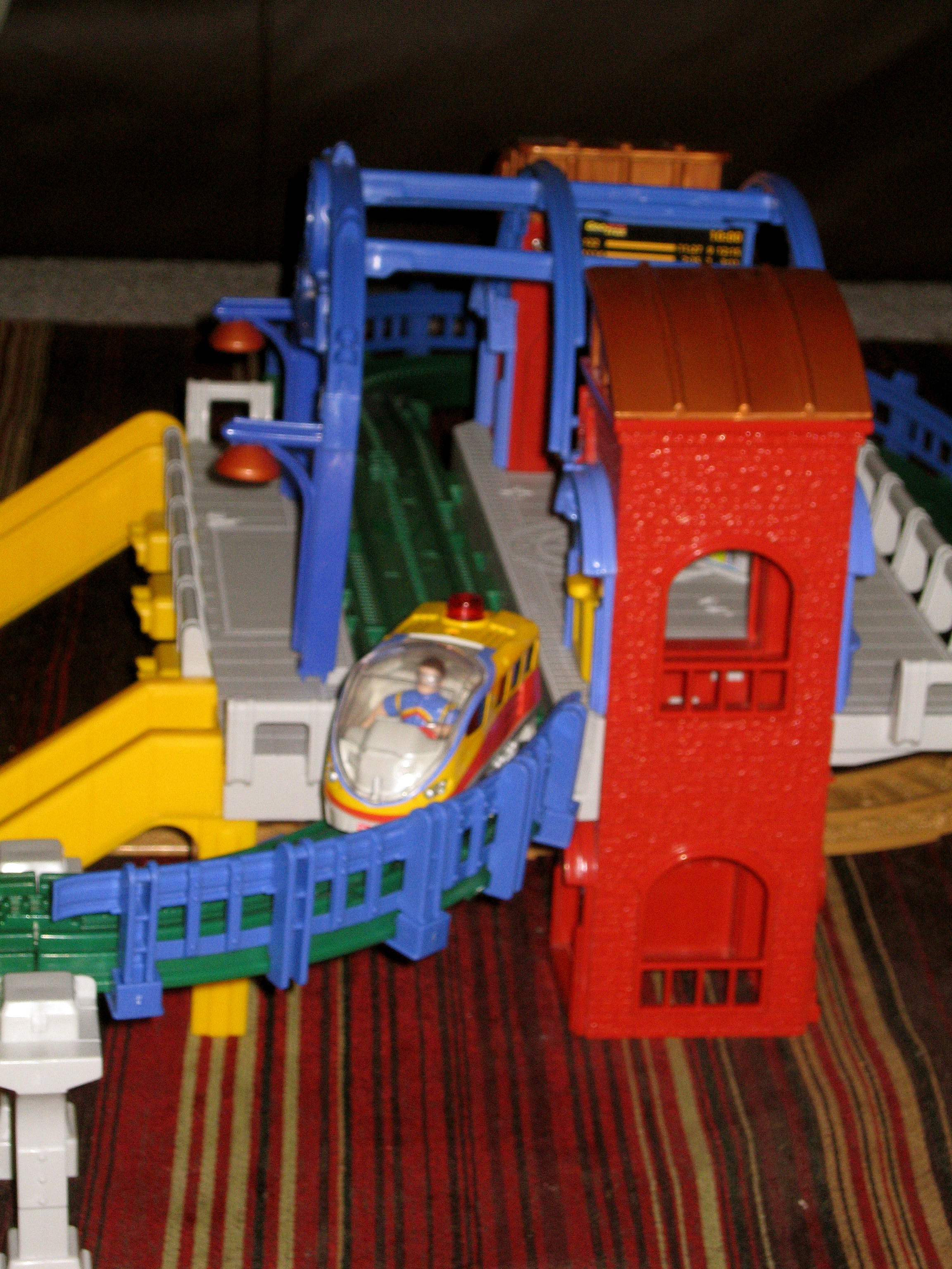 Just think of the track layouts we can build! The Clock Tower (from my ebay shipment) and the Rescue Tower (shown above) allow for three levels of track! How fun is that!!! 🙂