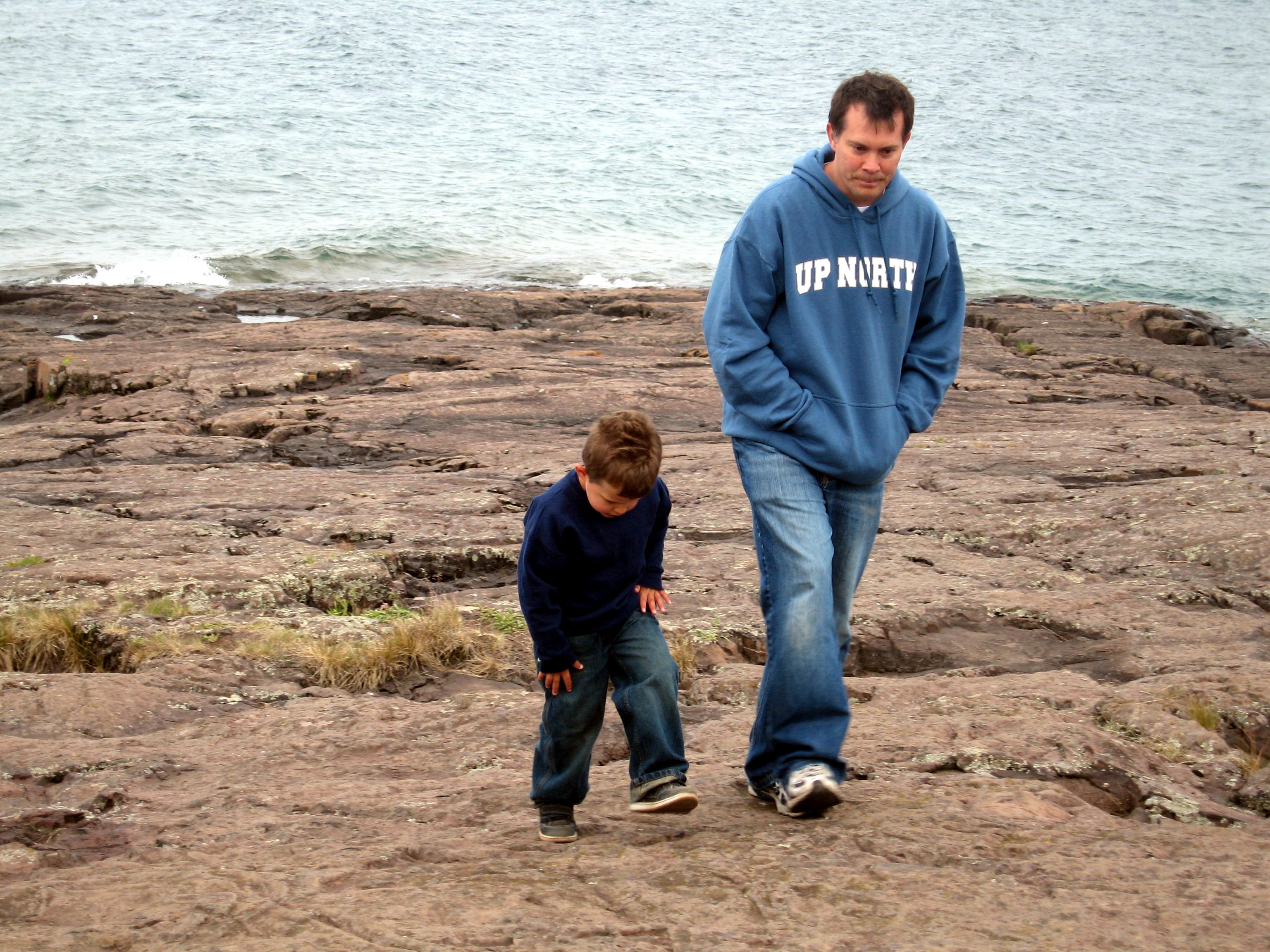 Punky and Dada walking back from the shore of Lake Superior.