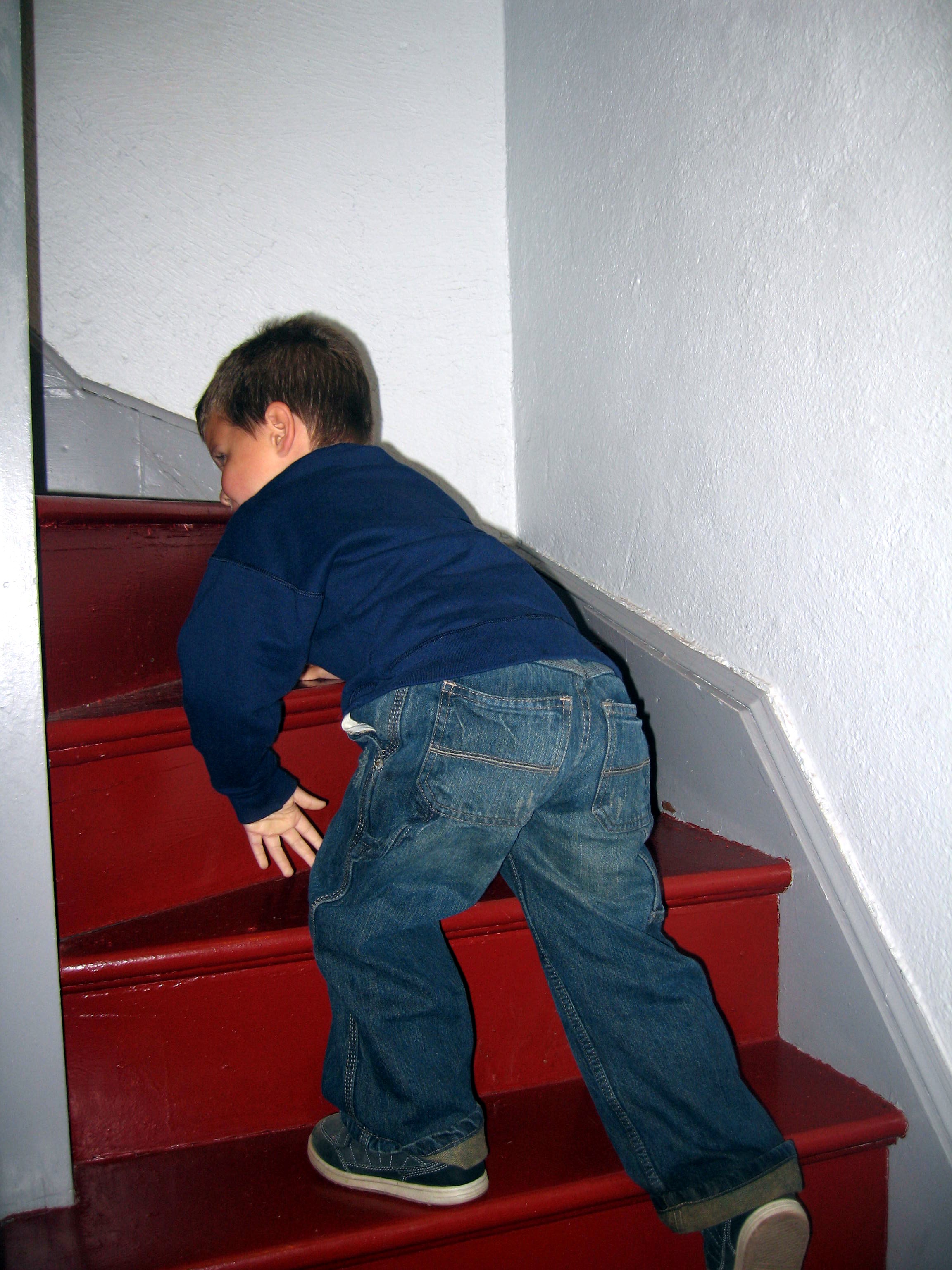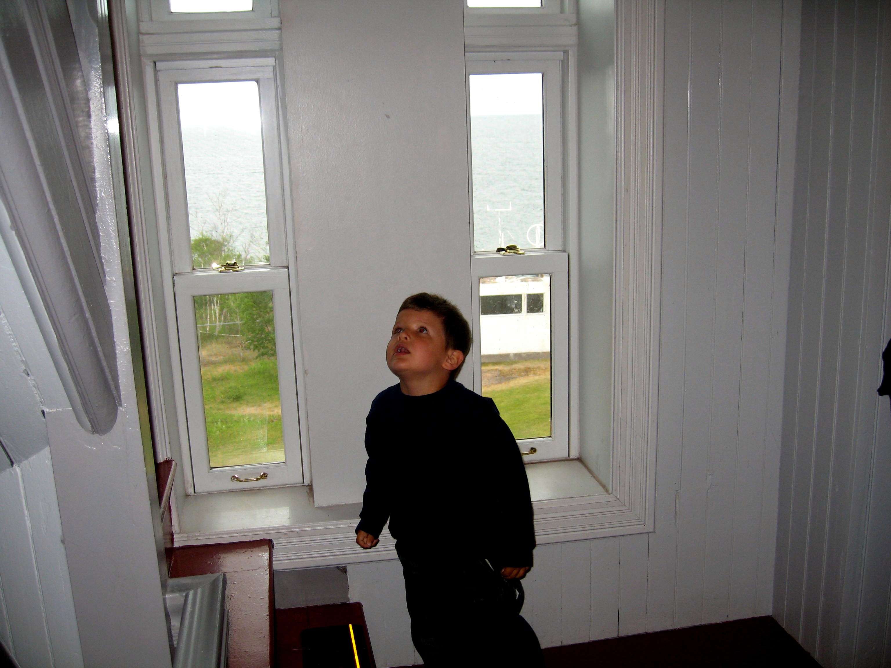 Punky climbing the lighthouse stairs to get to the top!