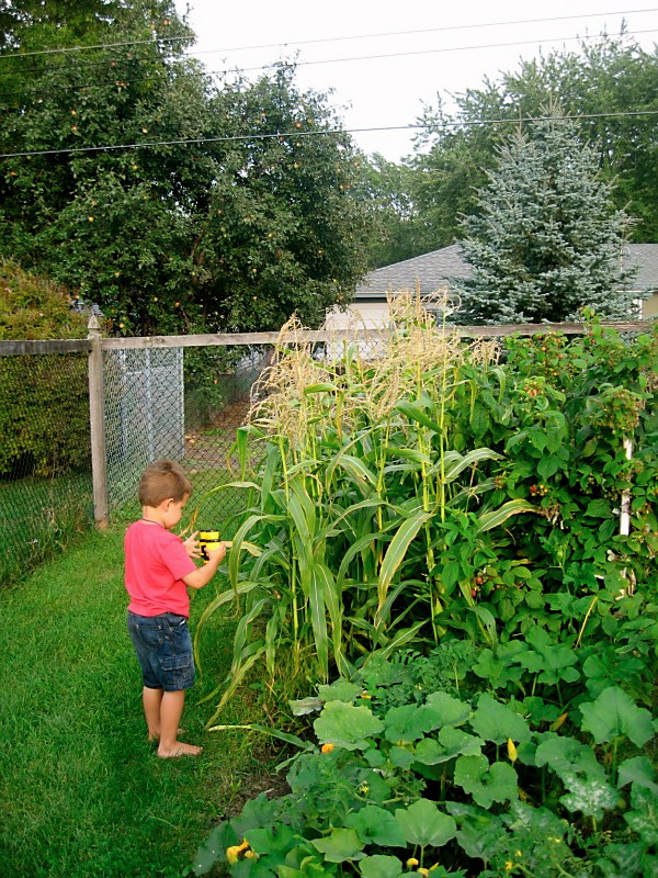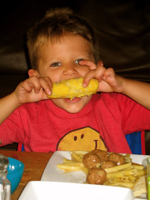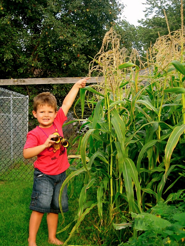 Hubby and Punky have tended our vegetable garden this summer. (Let’s not discuss the feast the rabbits have had in said garden!) Anyway, a few weeks ago, it was time to reep their hard labor. The corn was ready. I can’t explain Punky’s excitement in words, so I’ll let him do it for you…