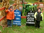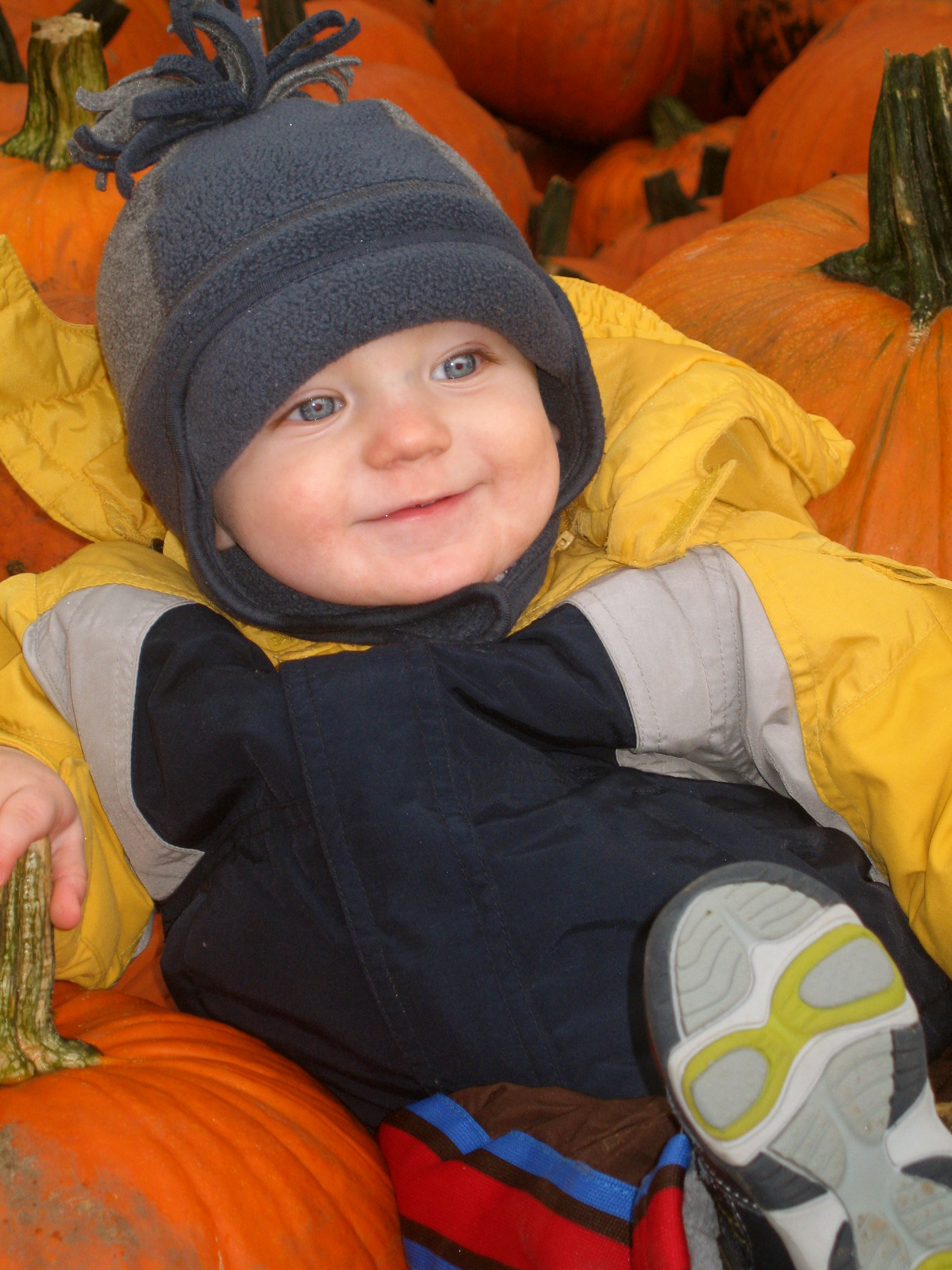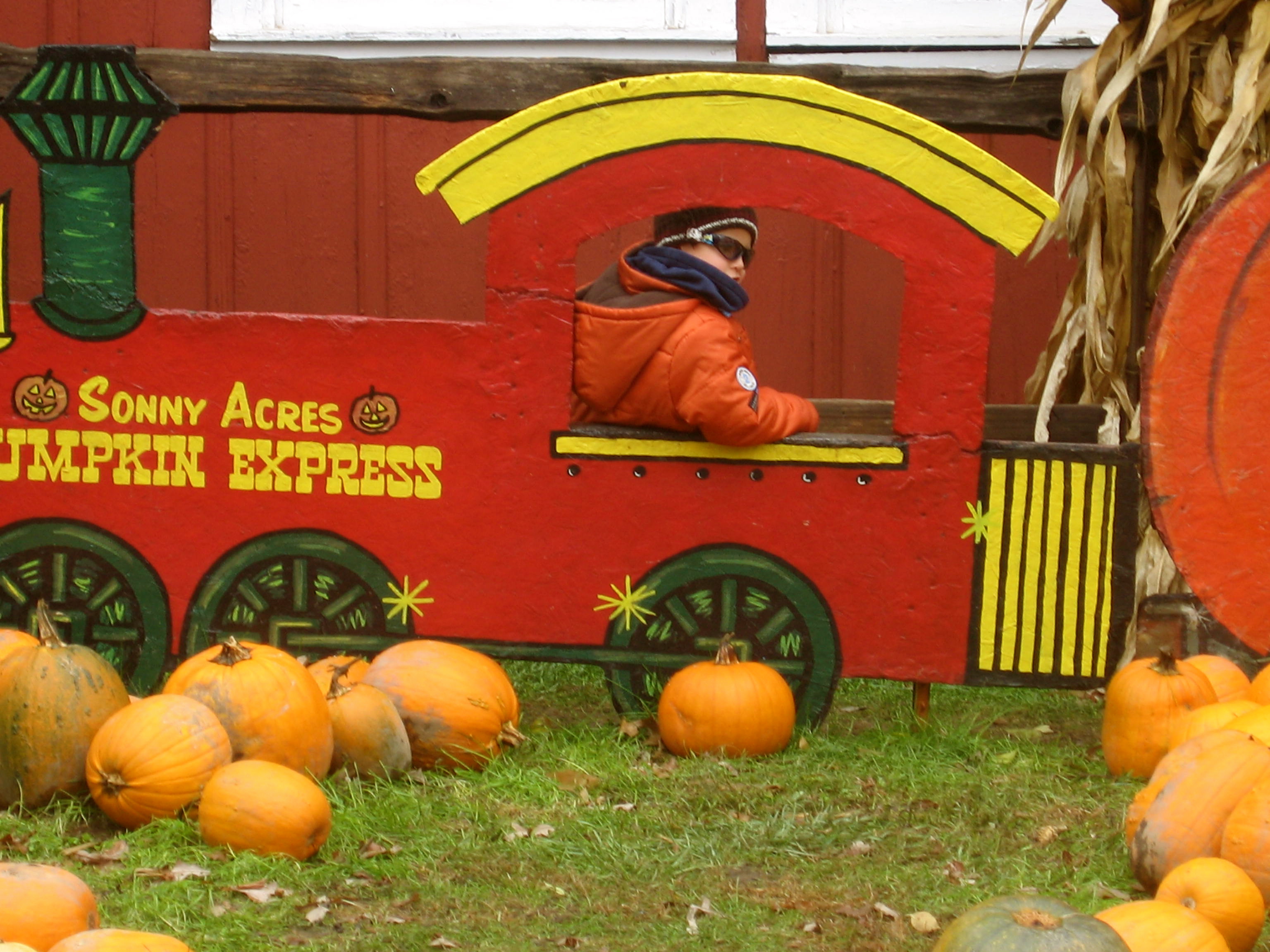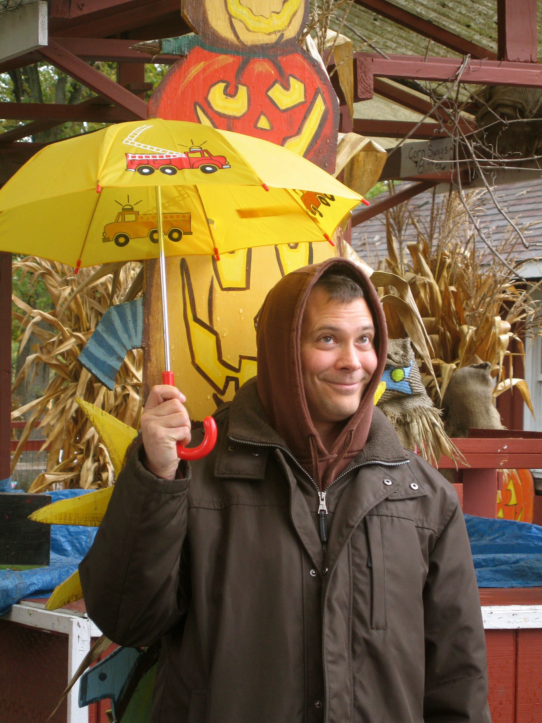 Last Friday, in the rain, we hit the pumpkin patch in Illinois with my sister, her kids and our mom, Grandma Knock Knock. We had fun, but it was cold, damp, and wet. Punky was quite the fashion model. He donned his sunglasses (no sun?), an umbrella, and his winter coat and hat. Here are a few pictures to document our time there! Brrrrrr.