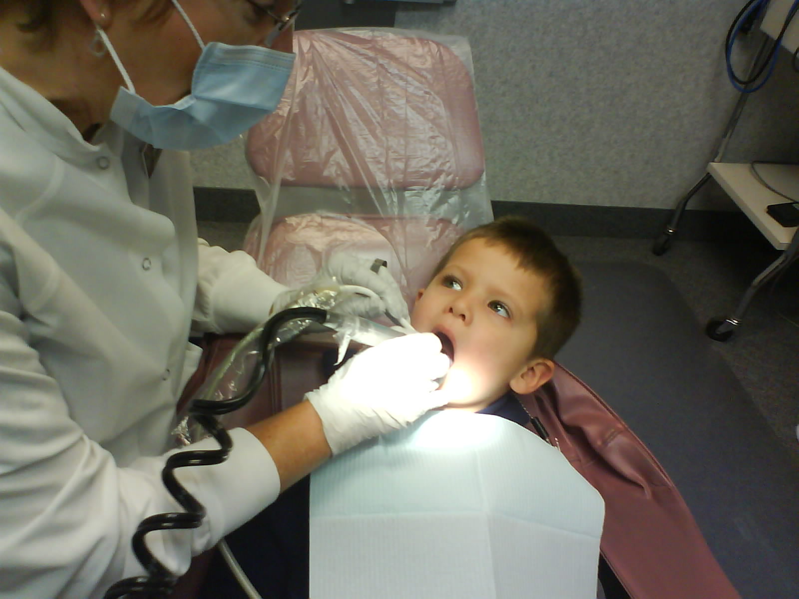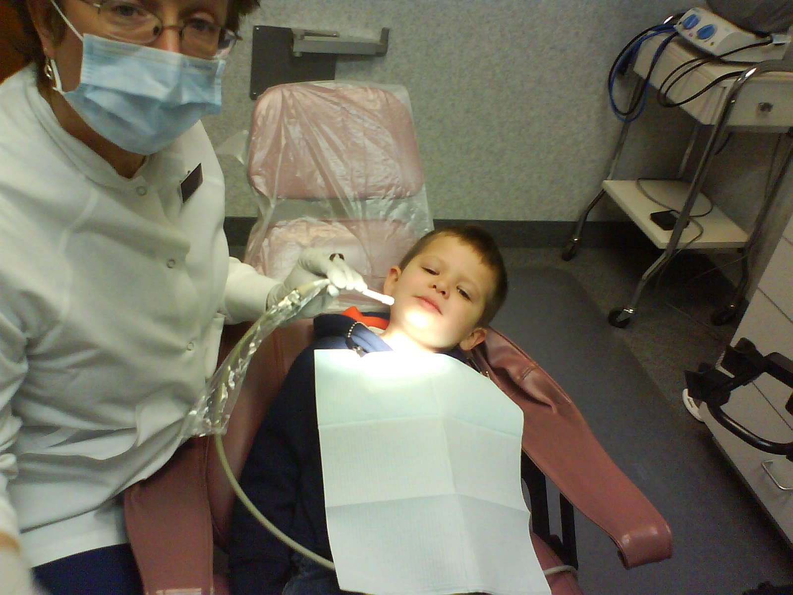 Punky went to the dentist this morning for his first cleaning and check-up. He did awesome! He was amazed that he has 20 teeth! Mama was a bit preoccupied and forgot her camera in the car, but I did manage to pull out my cell phone and take a few pictures!