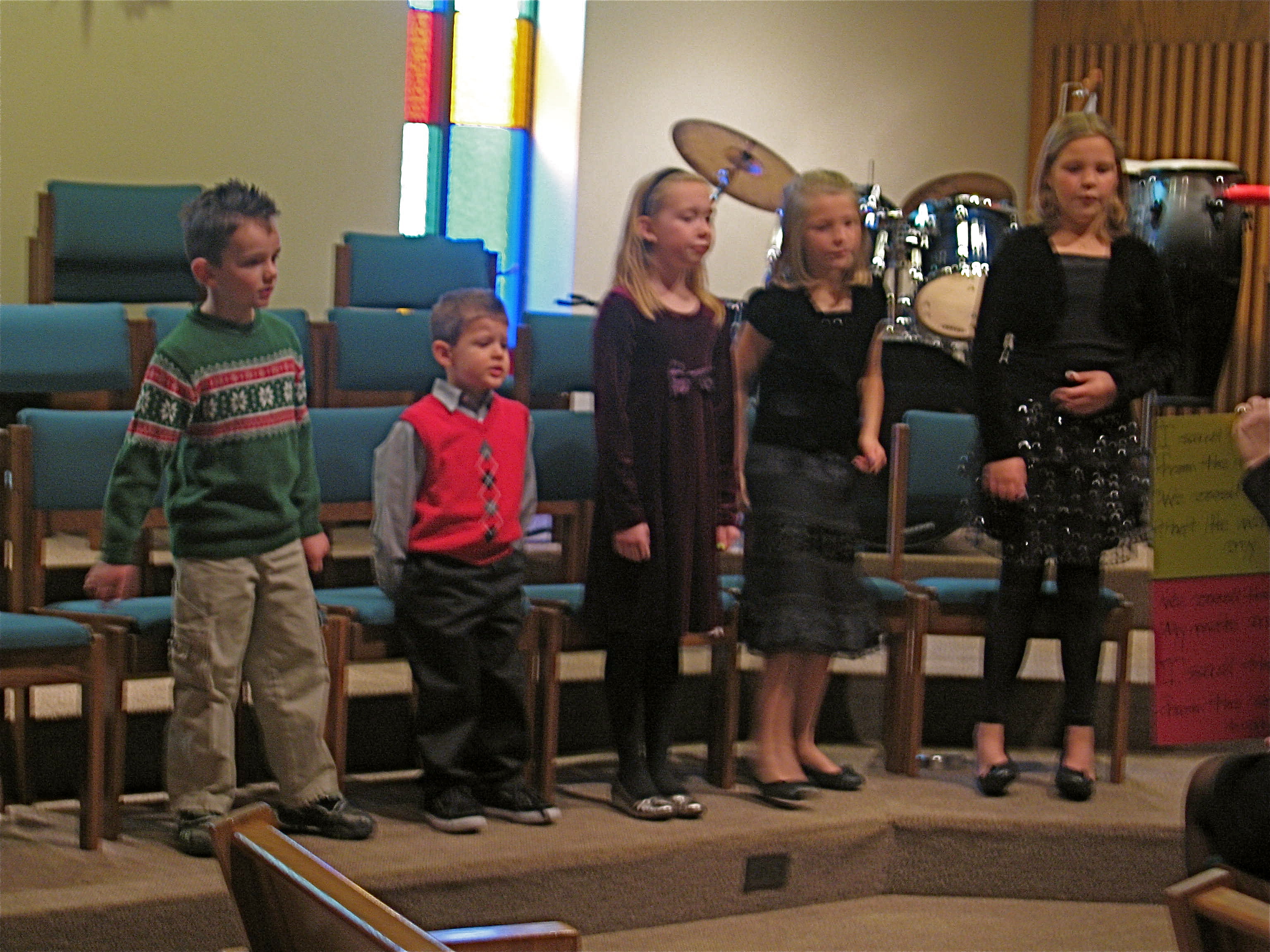 Yesterday was a BIG day for Punky. In the morning, he had his choral debut during the Children’s Christmas worship service. Here he is standing up in the choir at rehearsal before the service…he’s the youngest by far! (He’s in a snazzy red sweater vest that he picked out for his special day!)