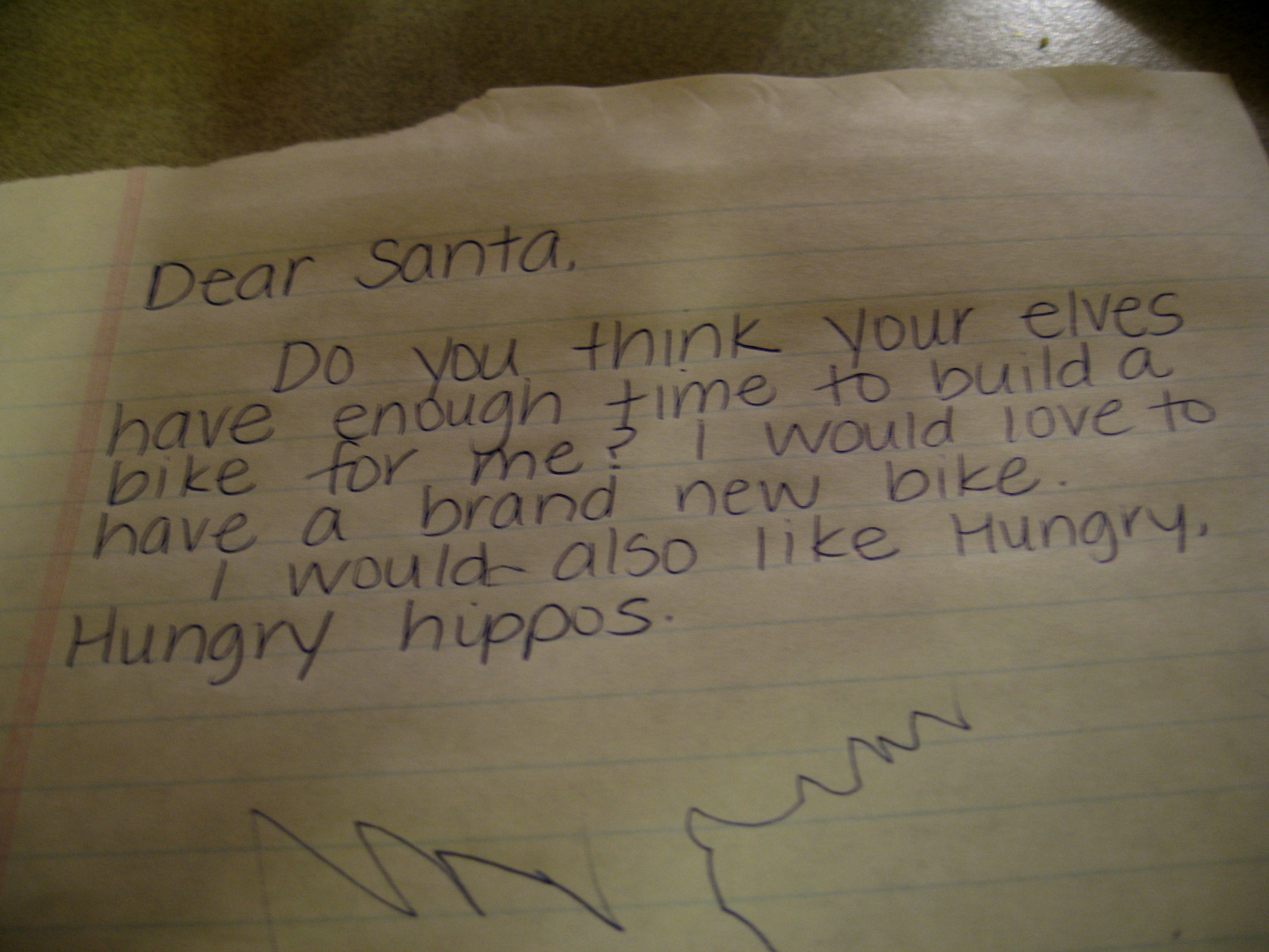 Punky and I sat down last night to write Santa a letter. Punky dictated while I wrote…