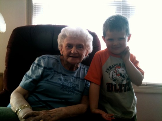 First, we visited my grandma (or as Punky calls, her, “Grandma Smart” – Coincidentally, one day after Punky ran out of his bathtub crayons the night before, he got a small package from Great Grandma with a new pack of bathtub crayons. When I asked Punky how she knew he was out, he responded with, “”Cuz she’s soooo smart!” So, now he calls her Grandma Smart).