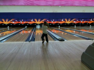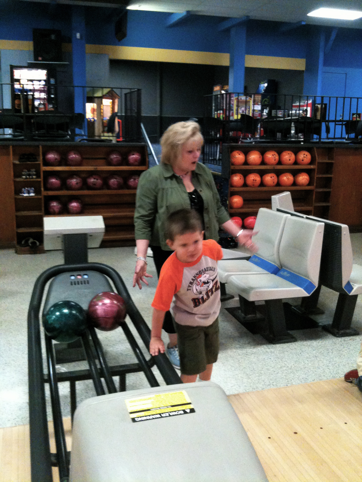(Off the record, I suck at bowling…… the bowling genes in our family somehow skipped me, but on this particular day, my mom happened to suck, too…..and I BEAT her! That never happens! And just to preserve this feat, I snapped a picture of the score before we left. Ummmm.. HI MOM!)
