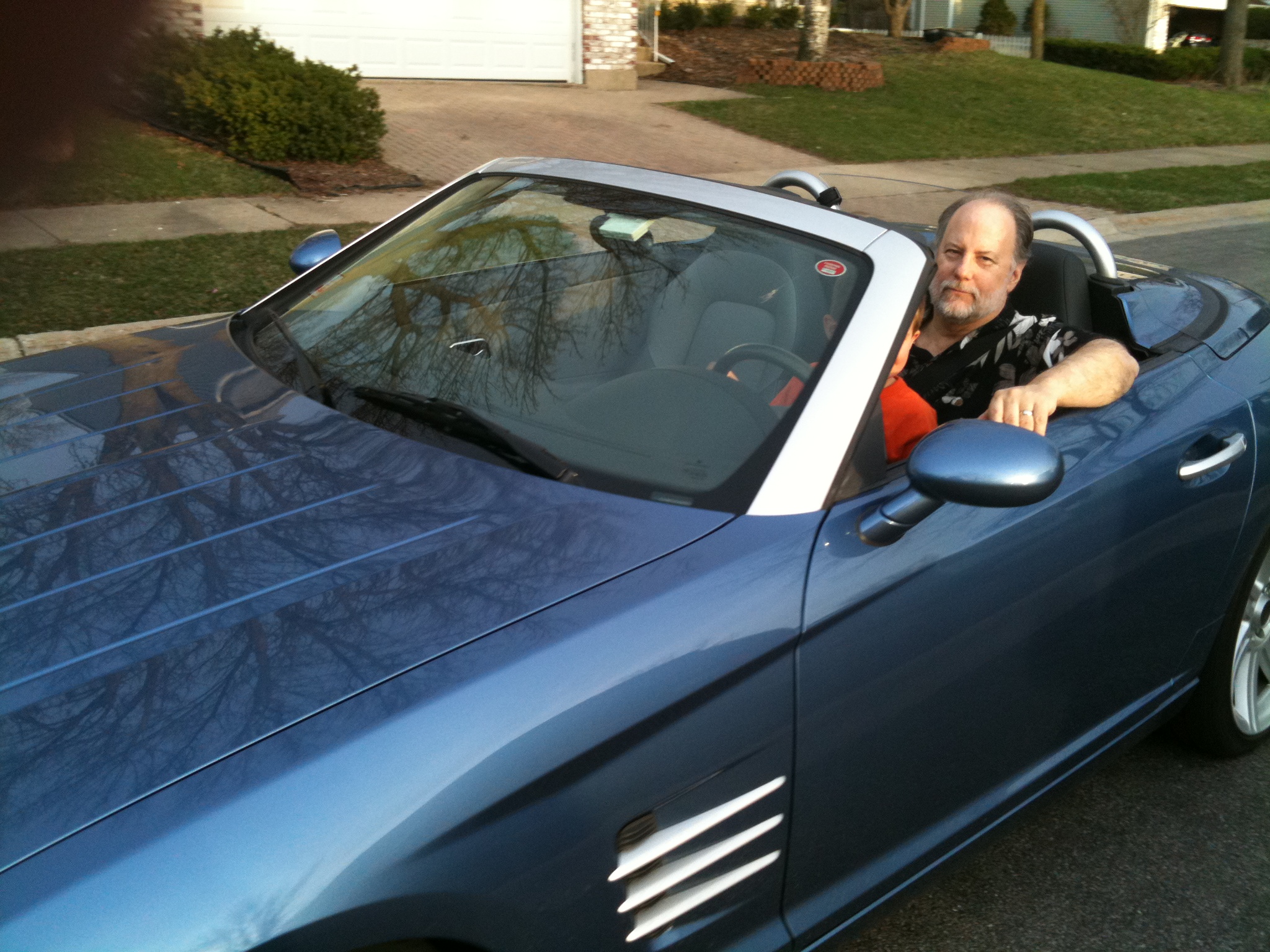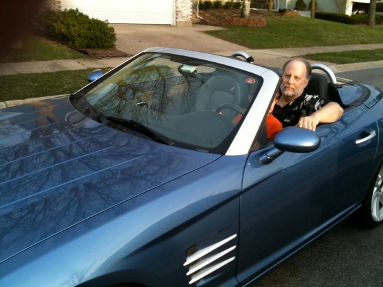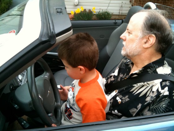 After awhile, Grandpa Ed came home. Punky got to drive his car! (Punky loves doing this…as did his mommy when she was a little girl!)