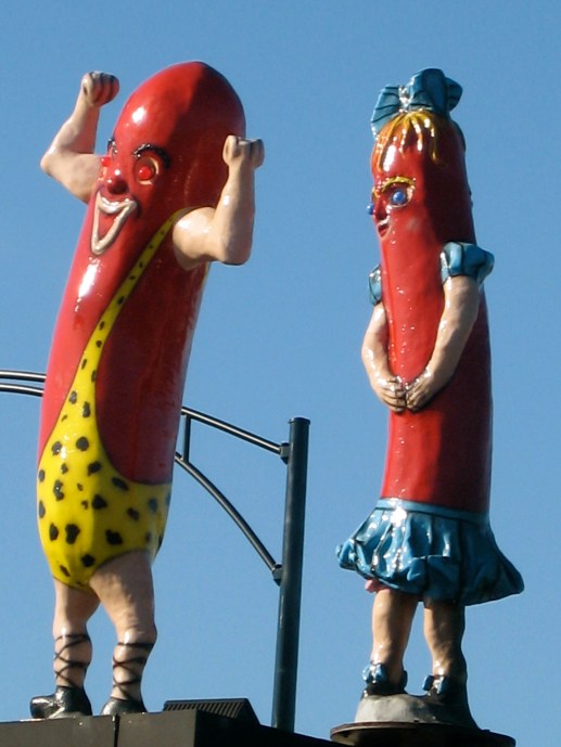 Over spring break, my mom and dad took Punky and me to the NEW Superdawg location in Wheeling, IL. It was raining out… but I did get some cool photos. (They are still waiting for the huge hotdogs for the top of the roof – as pictured above from the original restaurant in Chicago).