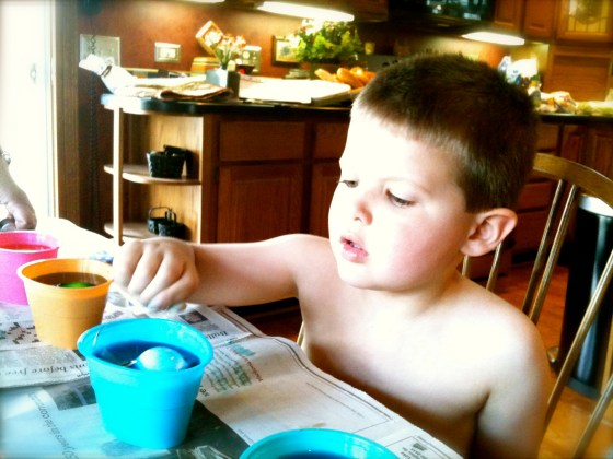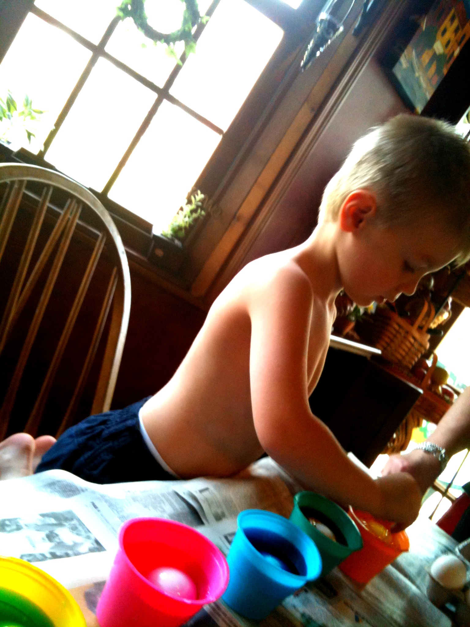 Punky and his cousin colored eggs at Grandma Knock-Knock’s house on Good Friday. They had a lot of fun…