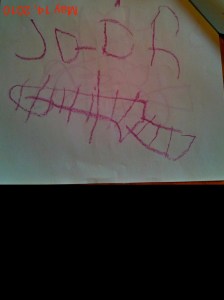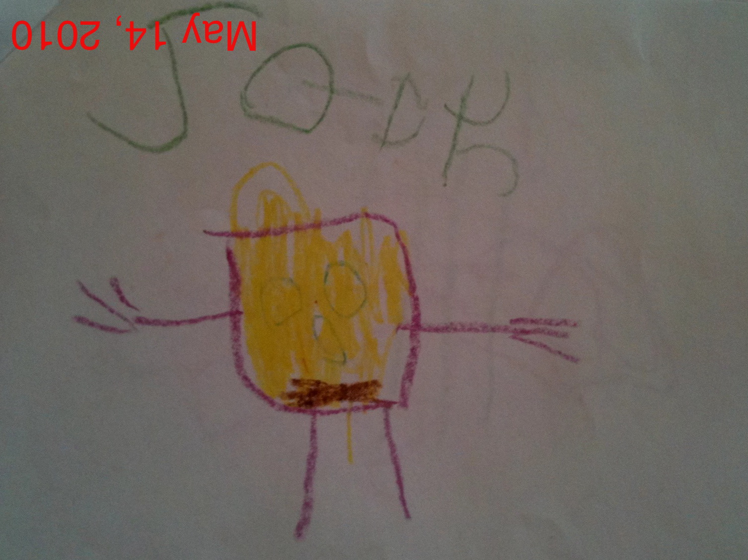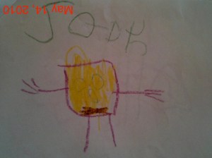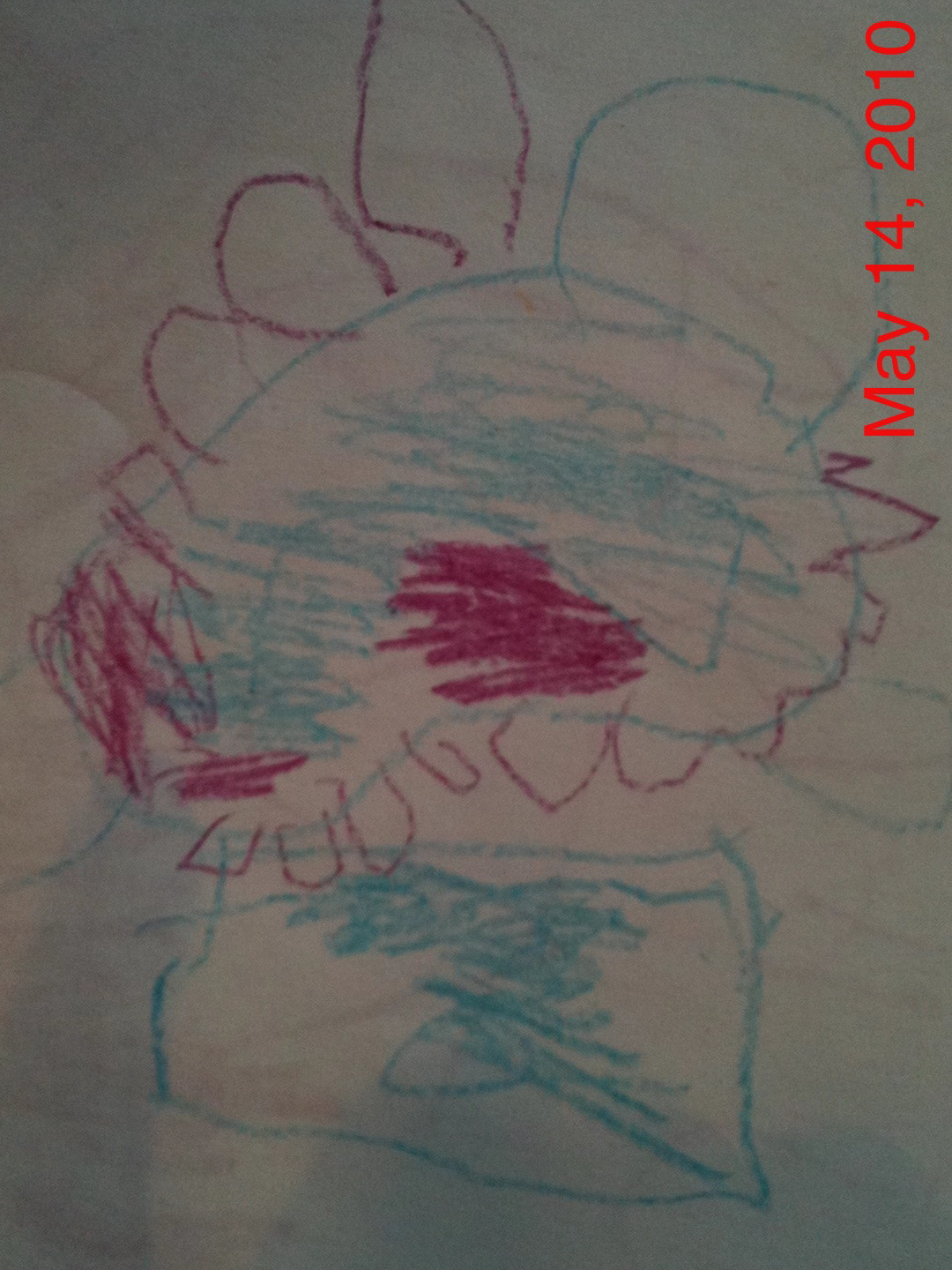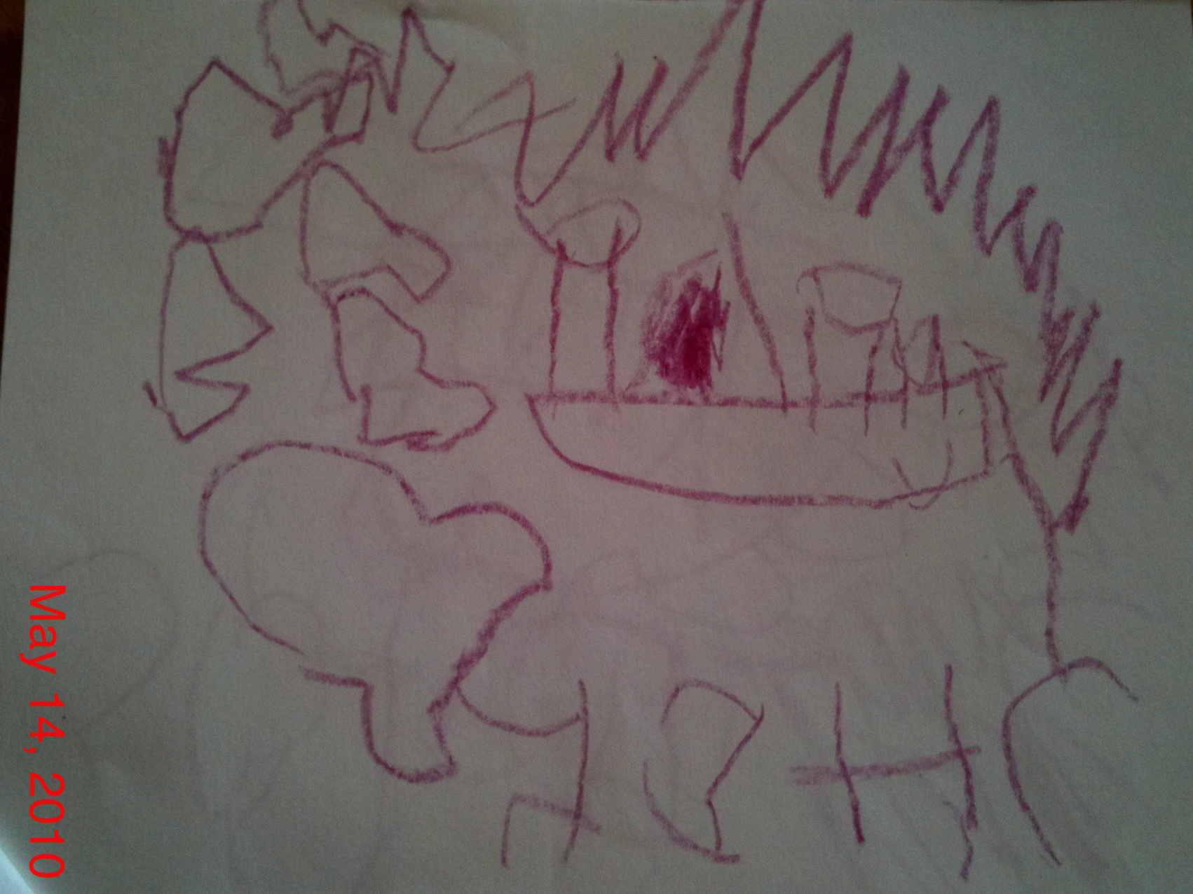 Punky came home a few weeks ago with a book of pictures he had drawn at daycare. (It just took Mommy a LONG time to finally get around to posting them). Enjoy our little guy’s drawings…