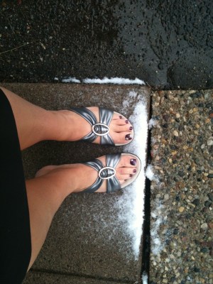 I gave up on shoes (closed toe shoes, that is) back in March. I’ve been sporting sandals, skirts, and dresses. I am in denial that winter has come back. I am so sick of winter. So, Mother Nature, please hear me out… After a bahzillion inches of snow this year…..and lots of freezing cold days… I. AM. DONE. WITH. WINTER.