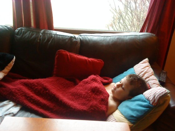 Punky’s fever was at 102.7 this evening right before bed. 😦 Poor kid.