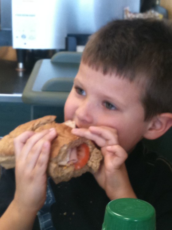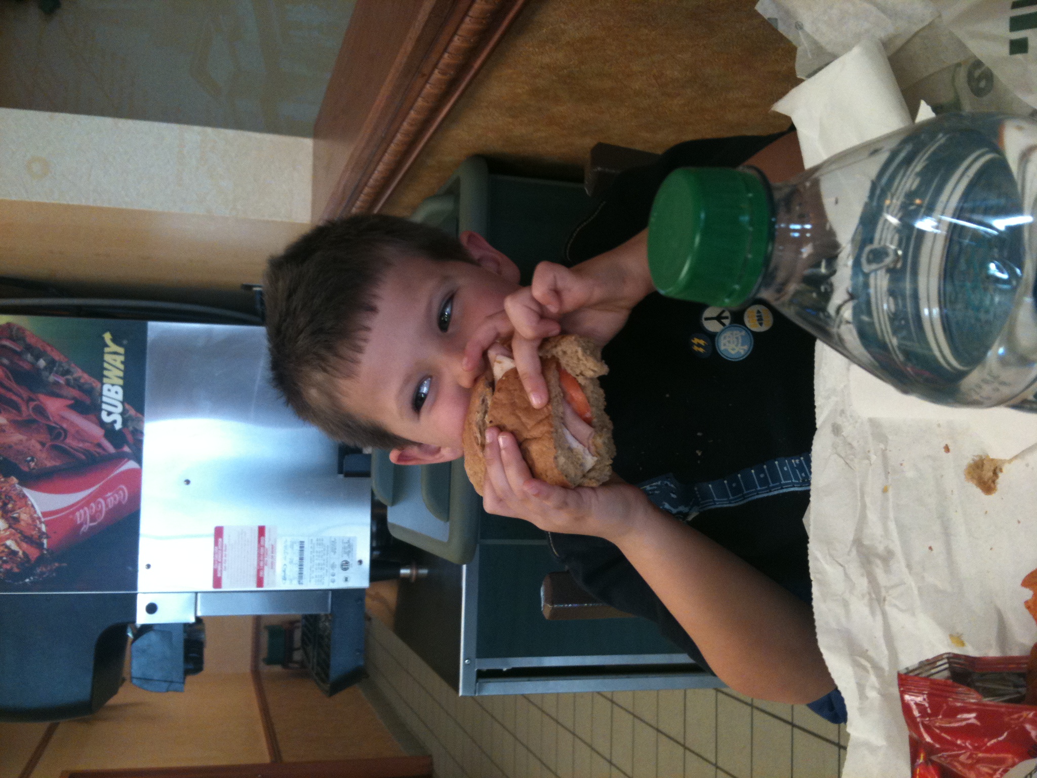 Right after we ate dinner at “Subway: Eat Fresh” (Seriously…this is what Punky calls Subway”) Punky went to his Kindergarten Open House night and the boy was walking on air. He loved it! He was so excited! He was super excited when he saw some of his friends from preschool walking around…Where is my little man? He looked so grown up walking around the school tonight… made me so sad and yet so proud of the little guy!
