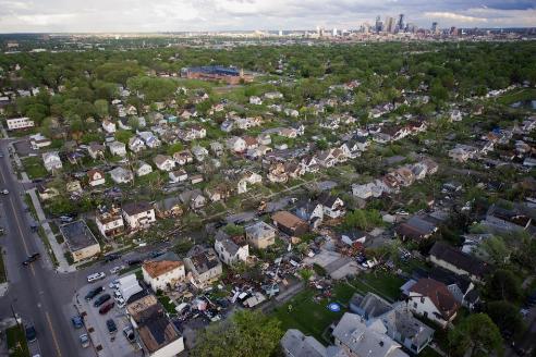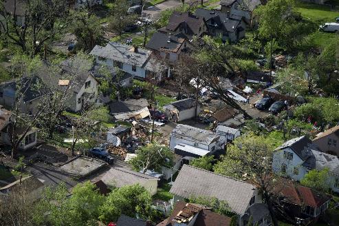 At 2:00, I checked the weather online, and we already had over 2 inches of rain this morning. Then… the sirens went off again. Punky was so freaked out again…so we hurried to the basement where we tried to settle him down explaining that the storm wasn’t very close to us. But, as we sat there listening to the radio, checking facebook statuses, twitter, news sites, we realized it was pretty close. A tornado ripped through North Minneapolis… below are some pictures from The Star Tribune website tonight. Sooooo scary.