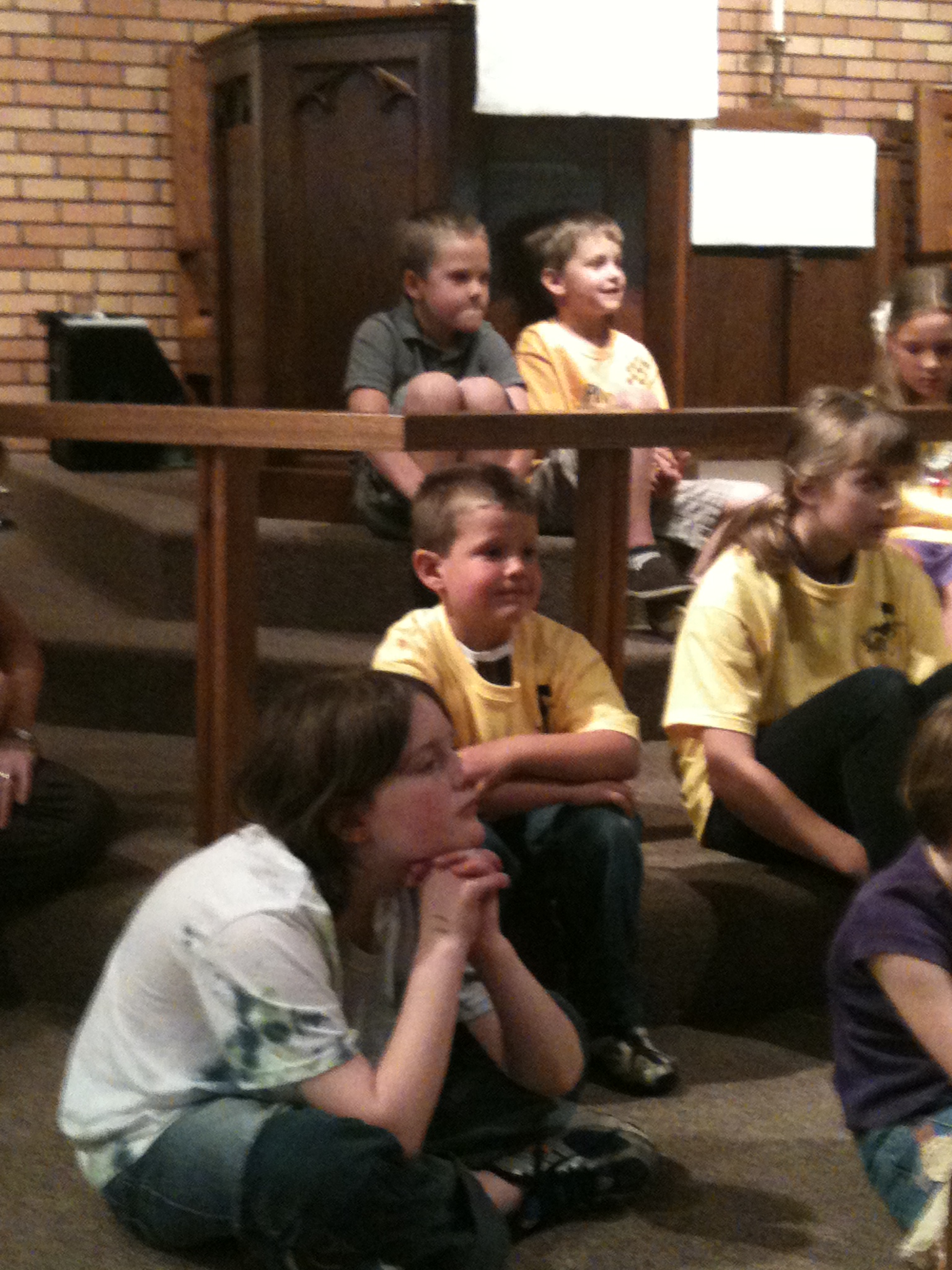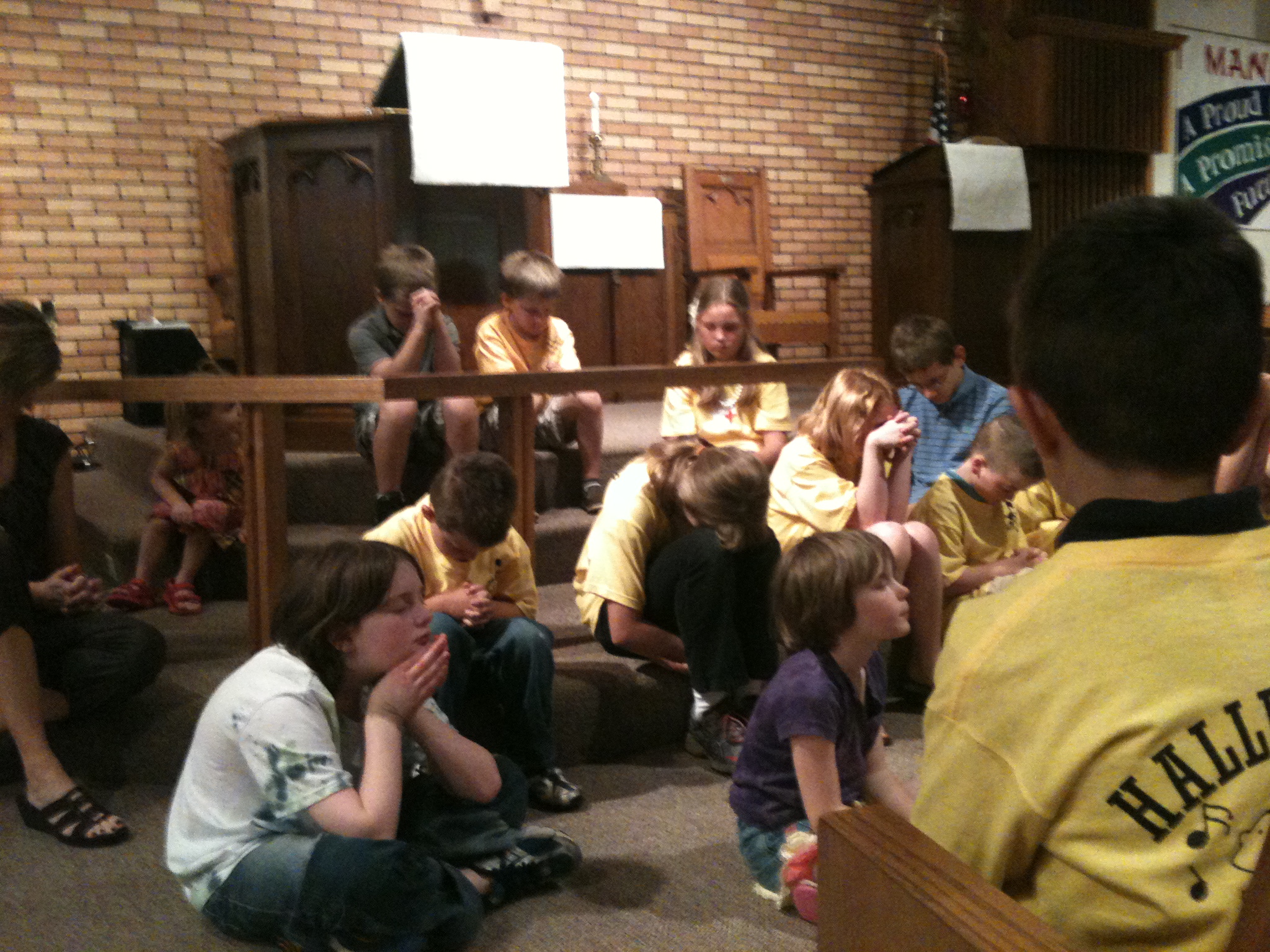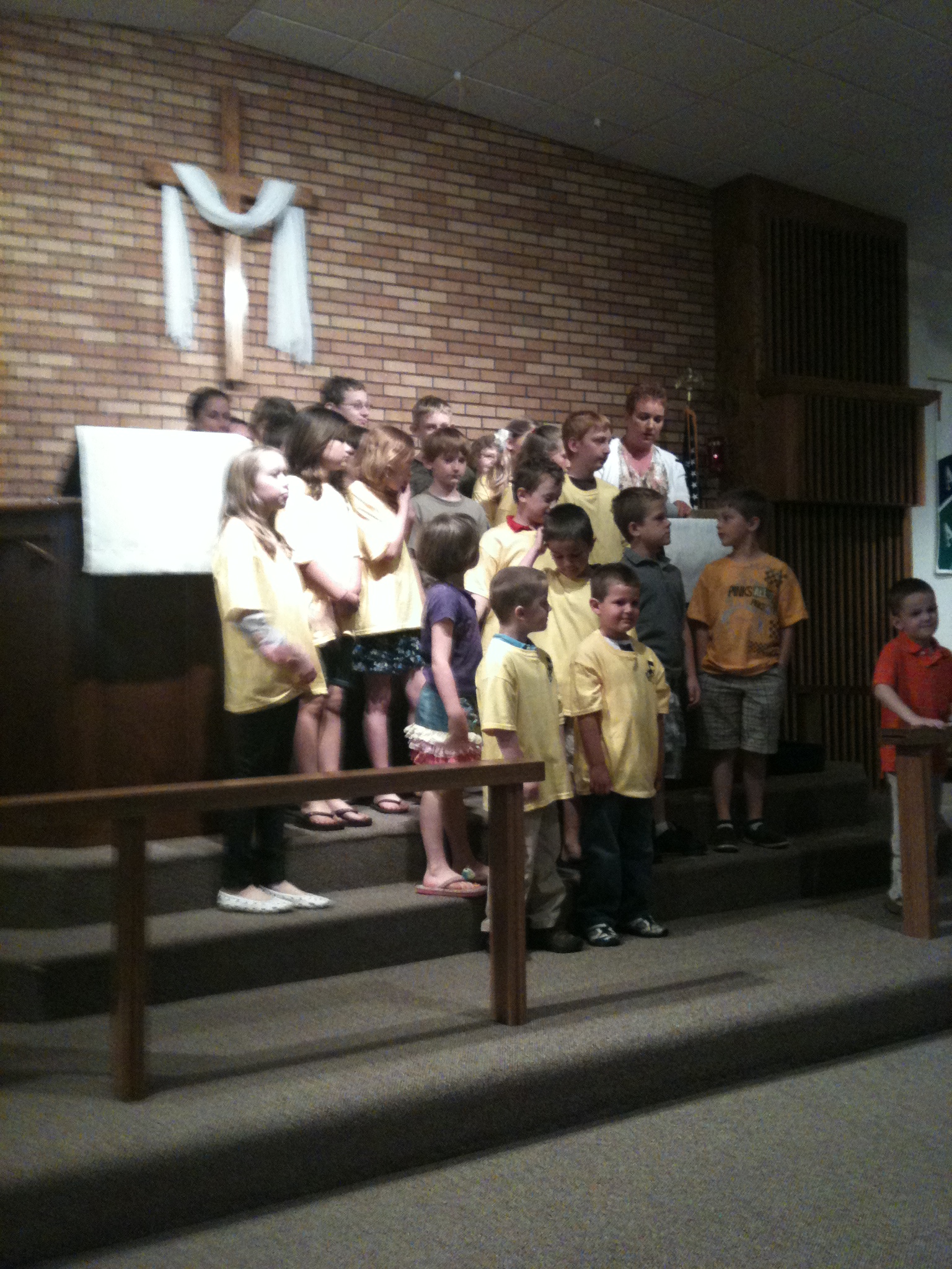 What a crazy day! Punky woke up with lots of excitement…the tooth fairy came! I shared some of those pictures with you already…on here and on facebook. He was so excited that at church during “announcement” time, he raised his hand and shared with the congregation that he had lost a tooth. It was so sweet. Today was the last day of Sunday School at church, and it marked the last performance from the Hallelujah Singers until next fall. Here are a few “fuzzy pics” from the church service today…