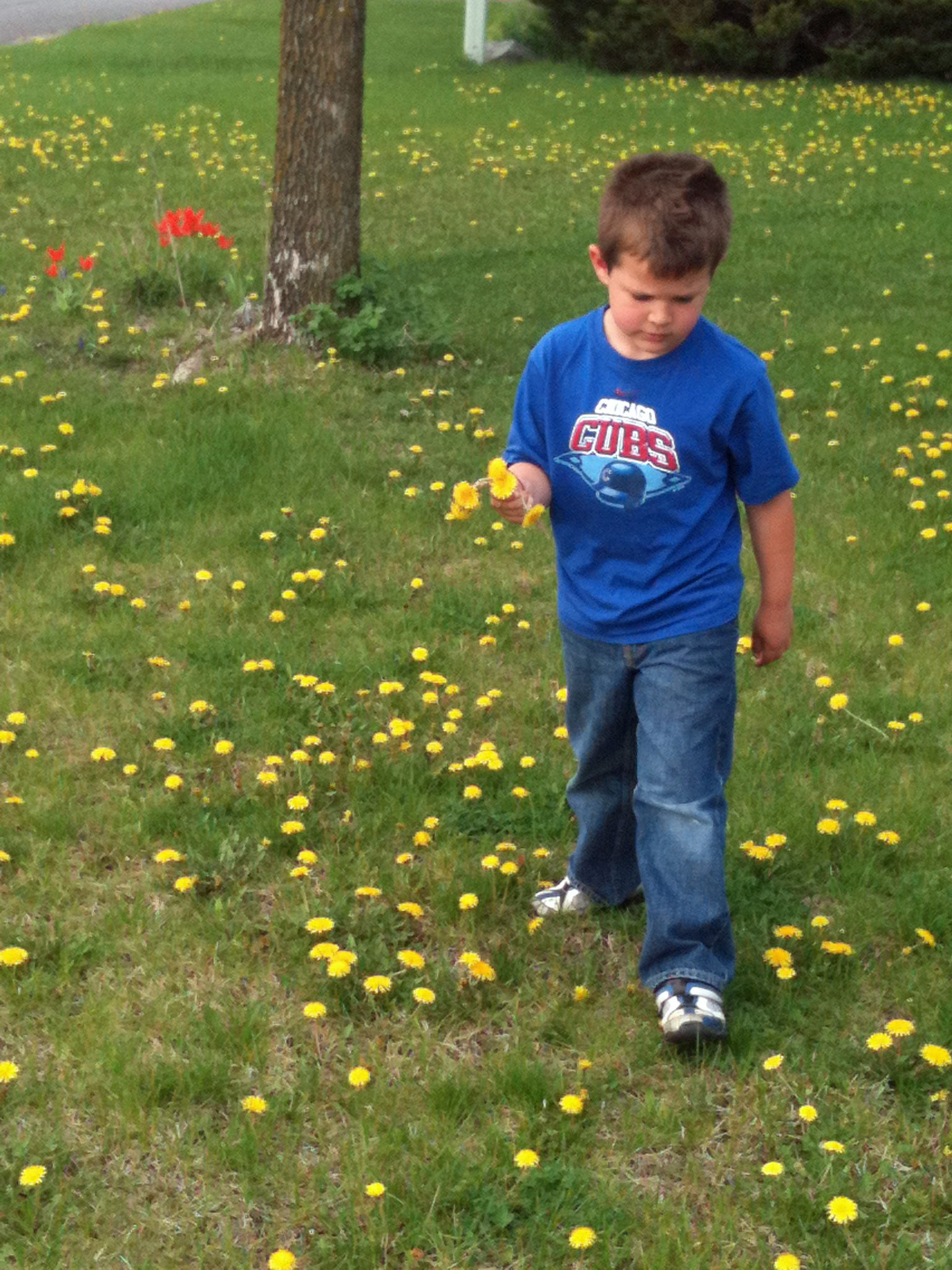 Punky hopped out of the car one afternoon and starting searching for the perfect flowers to give his Mama.