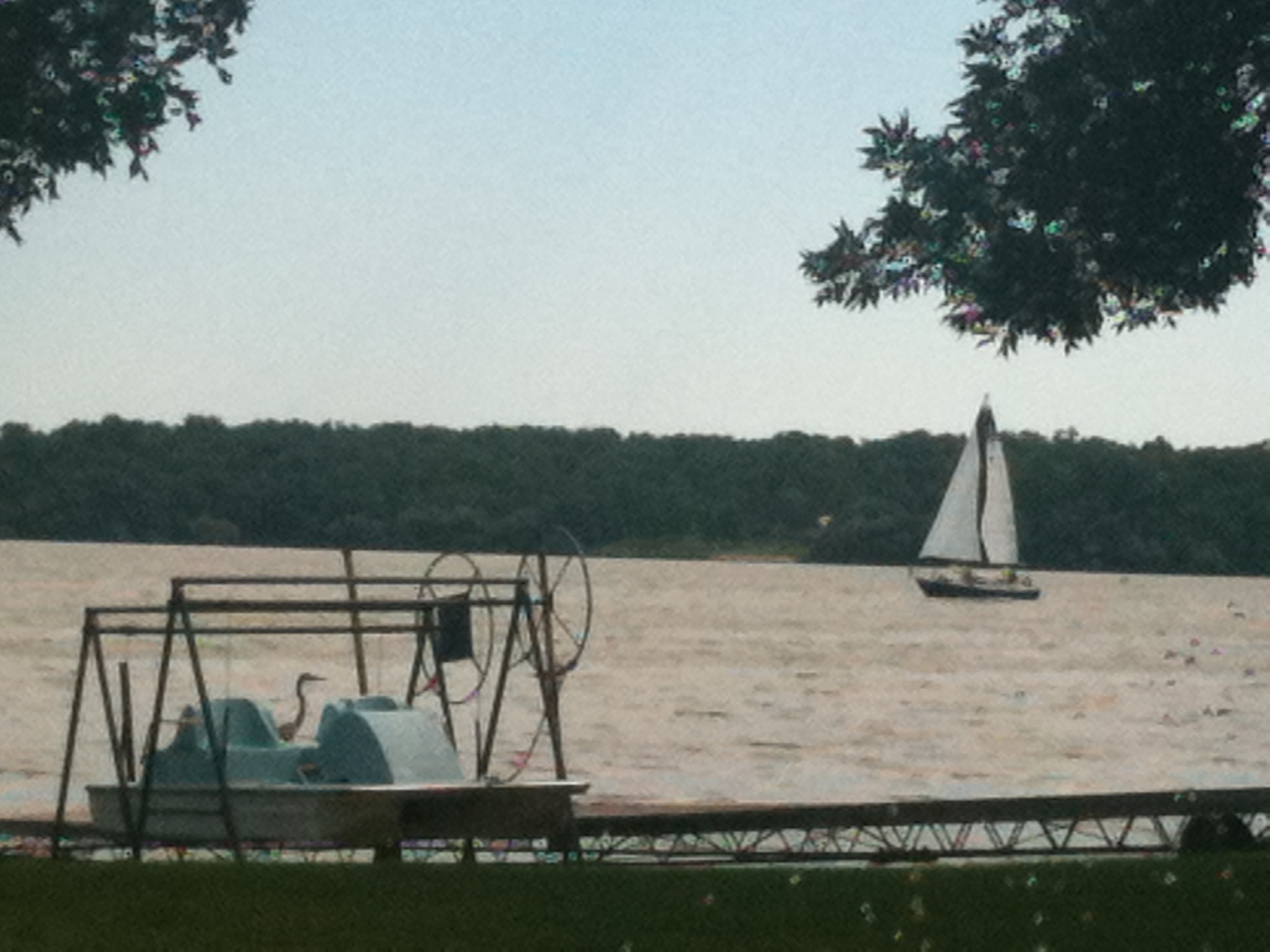 See that tiny speck in the middle of the picture—-out in the lake. That’s my boys! They went paddle-boating a few times! Punky and Hubby love it!