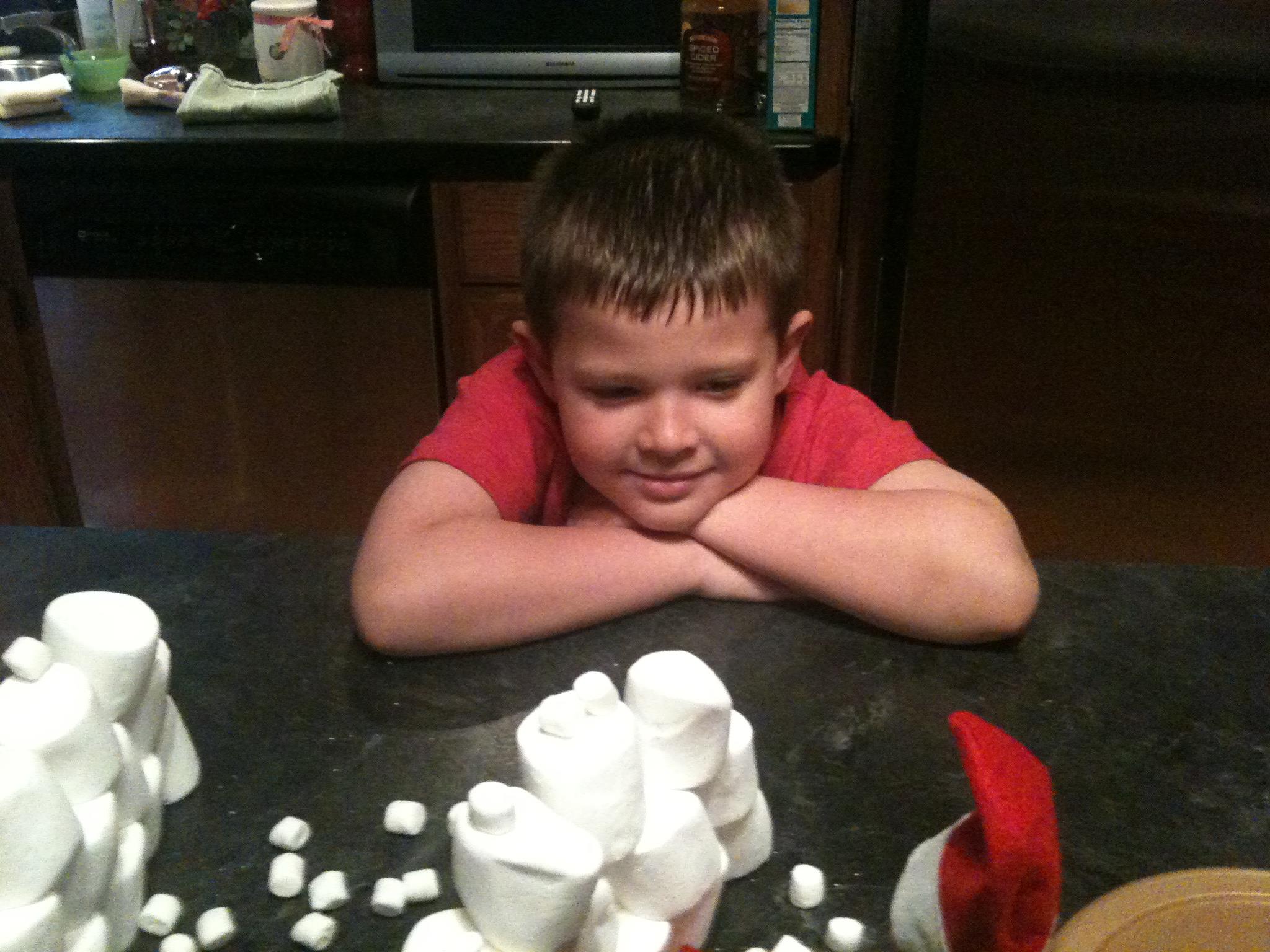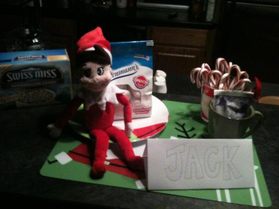 Anyway, Elfy brought breakfast from the North Pole, too. (Powdered sugar donuts, hot chocolate with LOTS of marshmallows, and candy canes!) Along with a letter detailing how much Elfy has enjoyed watching Punky over the past year at T-ball, School, and how much fun Punky seemed to be having at Disneyland this summer. Of course, the letter also pointed out a few things Punky can work on…
