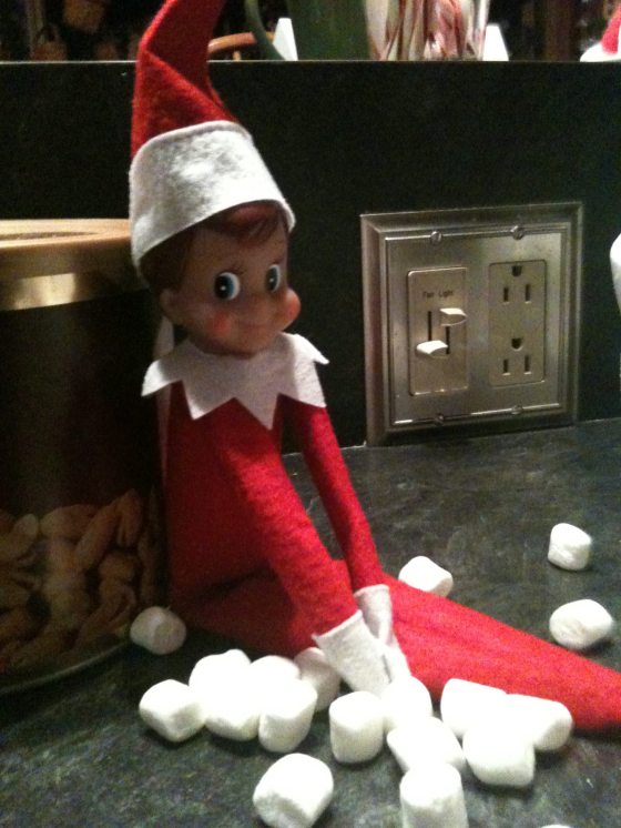 Day 3 found him enjoying goodies from Grandma Holly’s candy jar. Silly Elf!