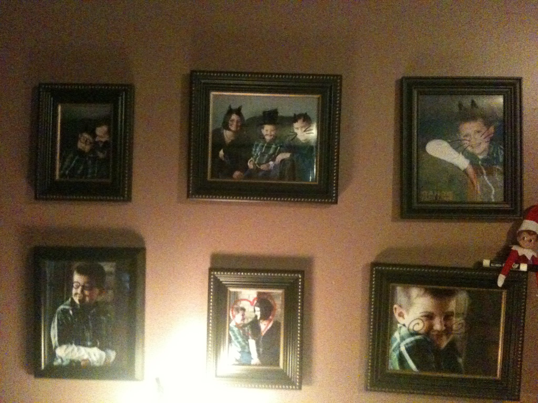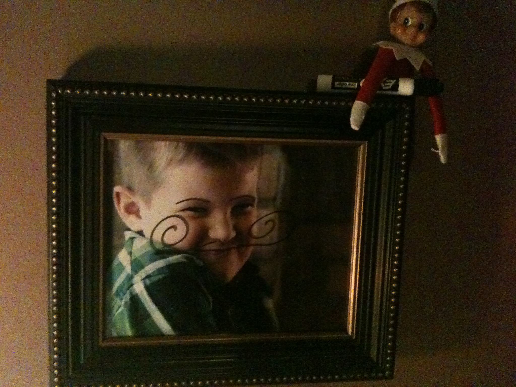 Tonight, Elfy got into a dry erase marker…..and hit the frames I just put up!!!! Punky is going to laugh so hard in the morning!