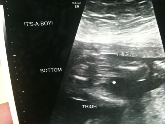 Well, we went in for our appointment today, and we definitely found out your sex! 🙂 I am super excited! Jack didn’t want to know until after school today since we weren’t sure if we’d be back from the doctor before he went to kindergarten. Another reason why he chose to wait was so that Grandma Holly wouldn’t be the last to find out you were a boy, since she was kind of bummed she was one of the last ones to find out about you in the first place (but that was because we wanted to tell her in person!)