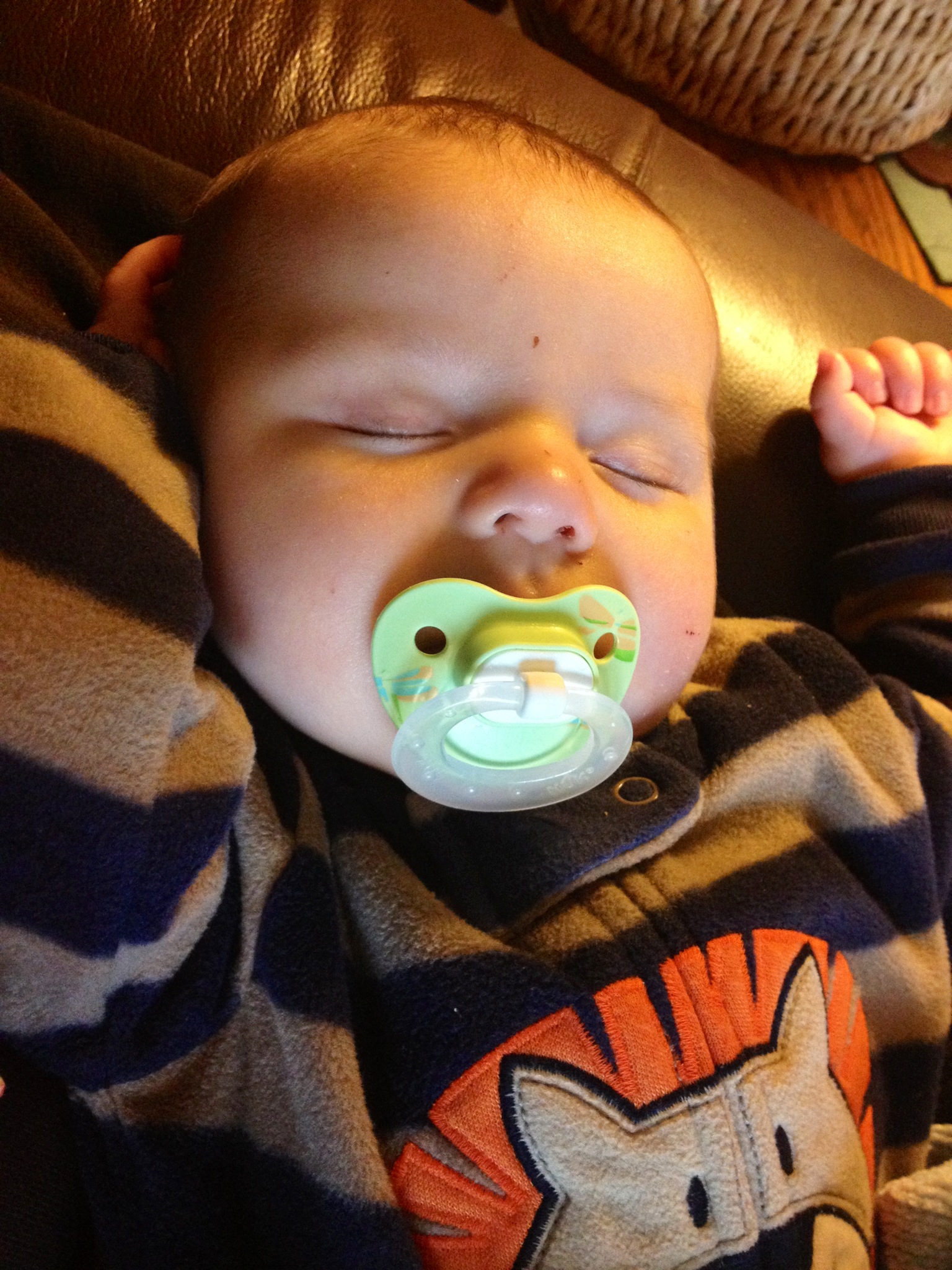A super happy baby boy who could breathe after being upright most of the day. It was so nice to just enjoy him all day long. Besides the snuggles, I got lots of smiles and some giggles, and lots of “talking.” Just made my heart smile all day long.