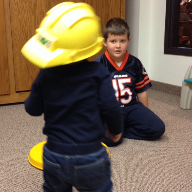 Sunday. I’ve been quite negative lately when it comes to going to church on Sundays. A few things frustrate me, but I learned today that I can’t let it get to me. How did I learn that today? By sitting in the crying room with my boys. Punky was in the worship service through children’s time. I was trying to put Kirby in the nursery, but after closing the door and walking to the sanctuary I could hear him wailing, so I went back to grab him. I’d rather be with him anyway…so we plopped down in the crying room and he started to play. Punky arrived back in the crying room after children’s time, and that’s when I realized it. Watching Punky and Kirby interact and play… THAT was what is important… not being super negative and frustrated since “All I do is sit in the crying room” was my attitude.