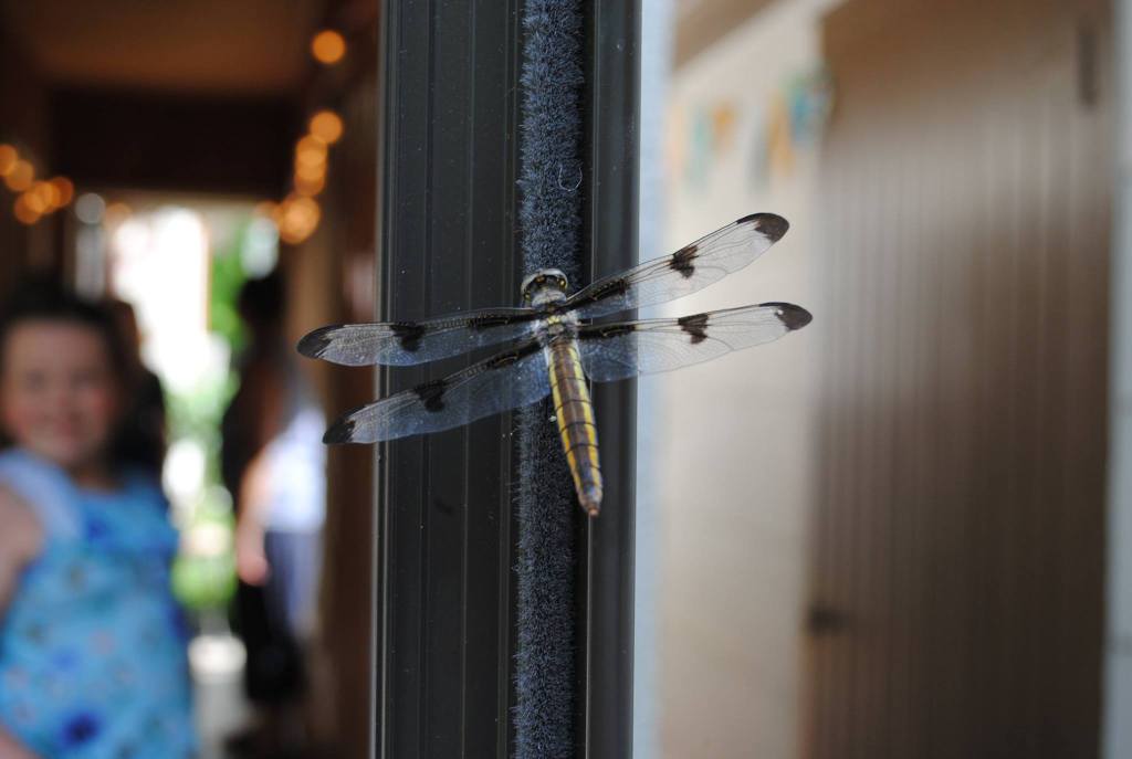 This photo was taken at a family graduation party. I took it. Just a little dragonfly saying hi and telling us she’s OK and still watching us.