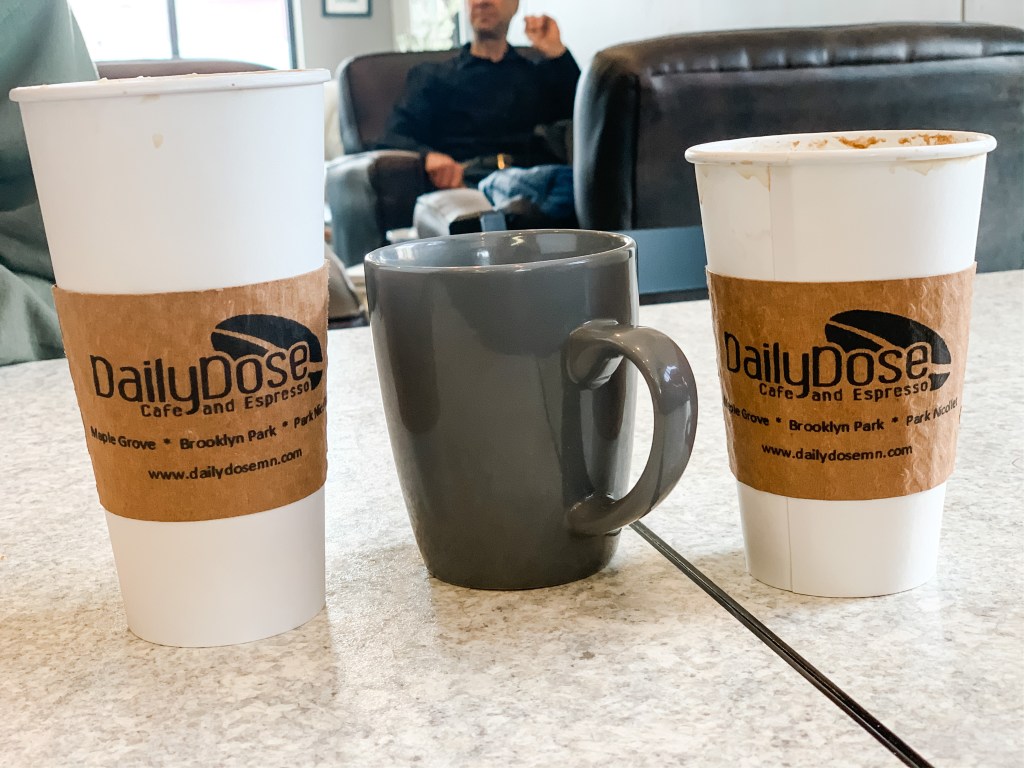 Here’s a photo of our coffee cups this morning at Daily Dose. It was satisfying to “capture” my photo so early in the day…and with my peeps.