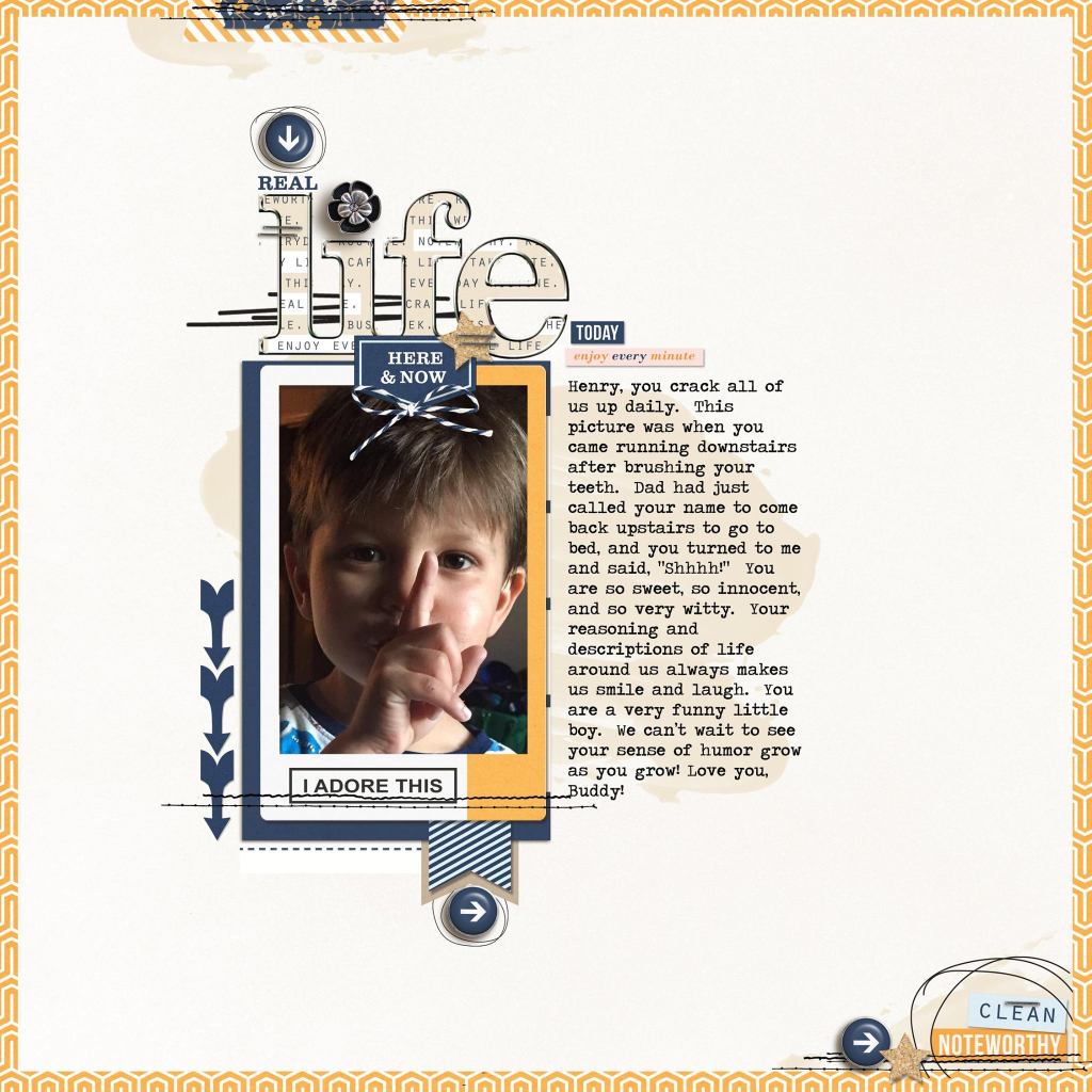 This is sweet Kirby. This is a scrapbook page I designed a few years ago for him. He is going “Shhhhhhhhh!” as he holds his finger to his lips. He had been upstairs brushing his teeth and came down to hide from Hubby to prolong going to bed. He saw me and said “Shhhh!” He is so sweet, so charismatic, and brings such joy to us.