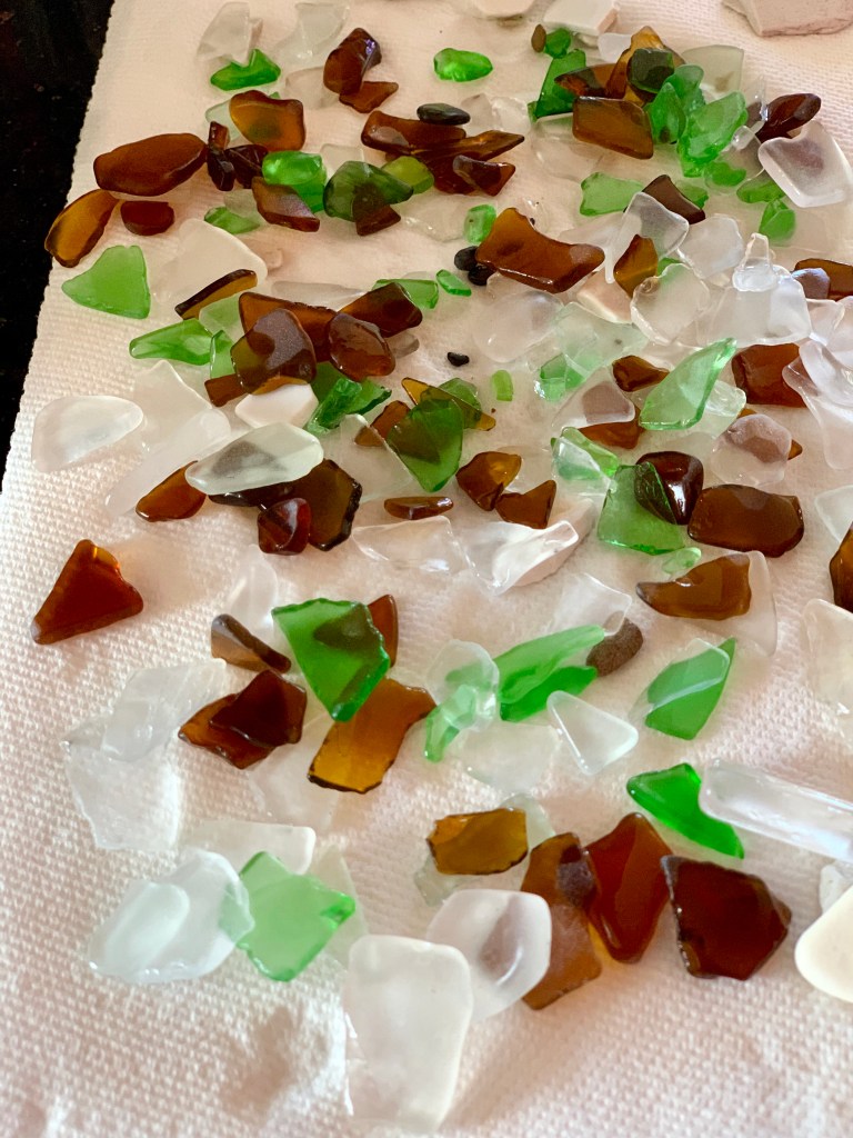 This is sea glass that I collected in Chicago last August with my family. We each hunted for these broken pieces of glass that have been made smooth and beautiful by the lake, in this case, Lake Michigan. I hunted and hunted so that I could get a “collection” to display in a small glass bowl on my bathroom shelf.